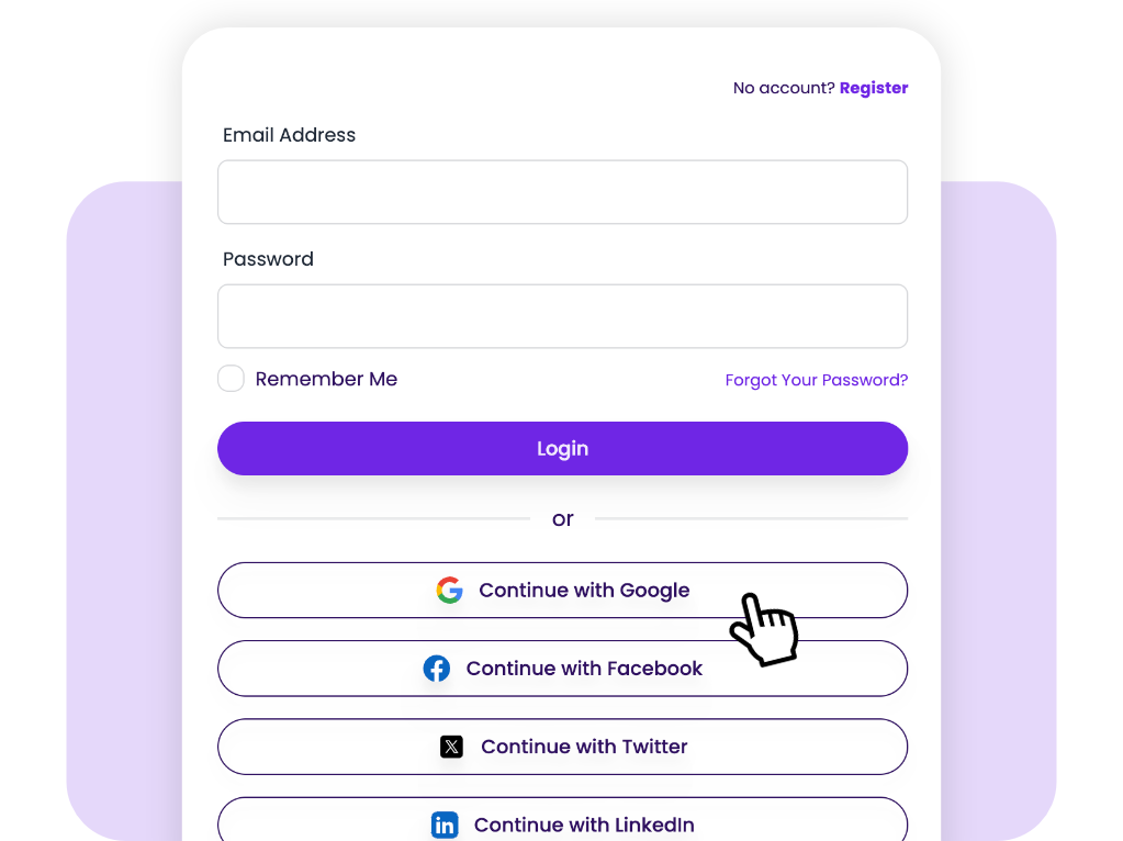 ConstructKit includes built-in user authentication, supporting both traditional email/password authentication and social login options such as Google, Facebook, Twitter, Github, LinkedIn, and more.