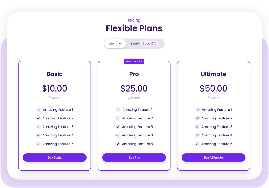 In a few clicks, your customers can subscribe to your service using a beautiful checkout page that shows all the details of the plan they are subscribing to, allowing them to add a coupon code if they have one, and choose their payment method.
