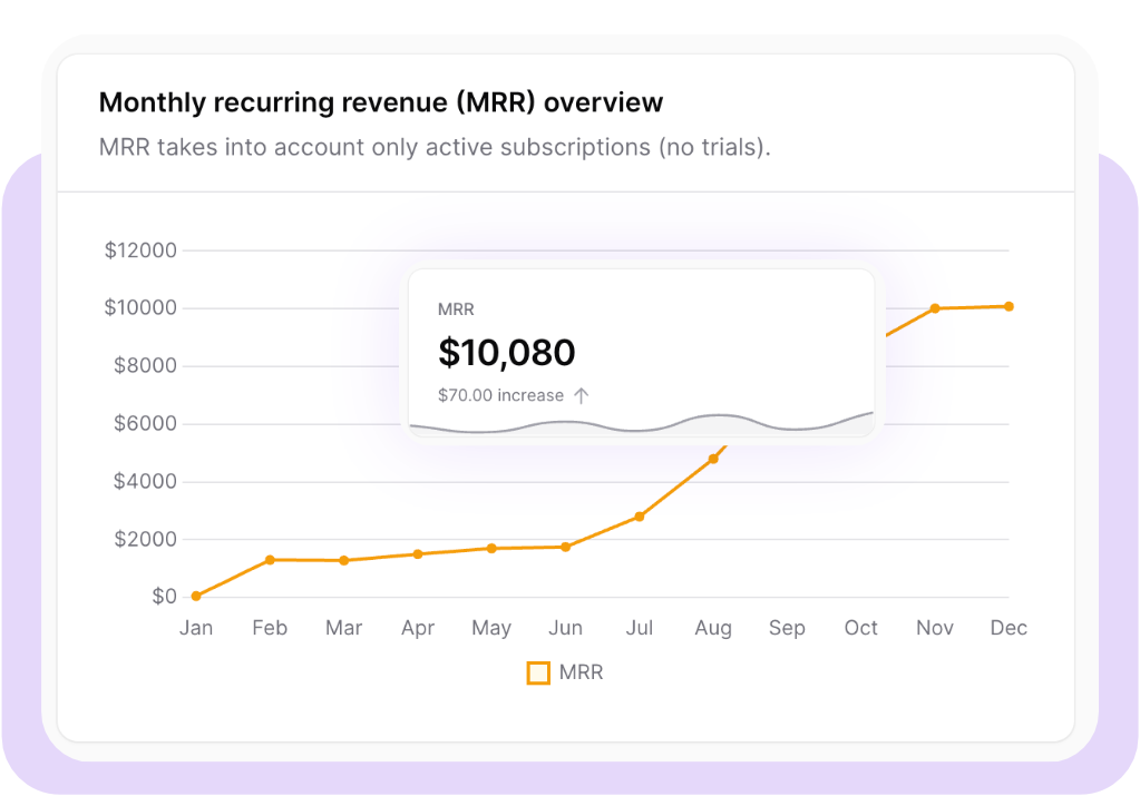 View your MRR (monthly recurring revenue), Churn rates, ARPU (average revenue per user), and other Construction metrics right inside your admin panel.